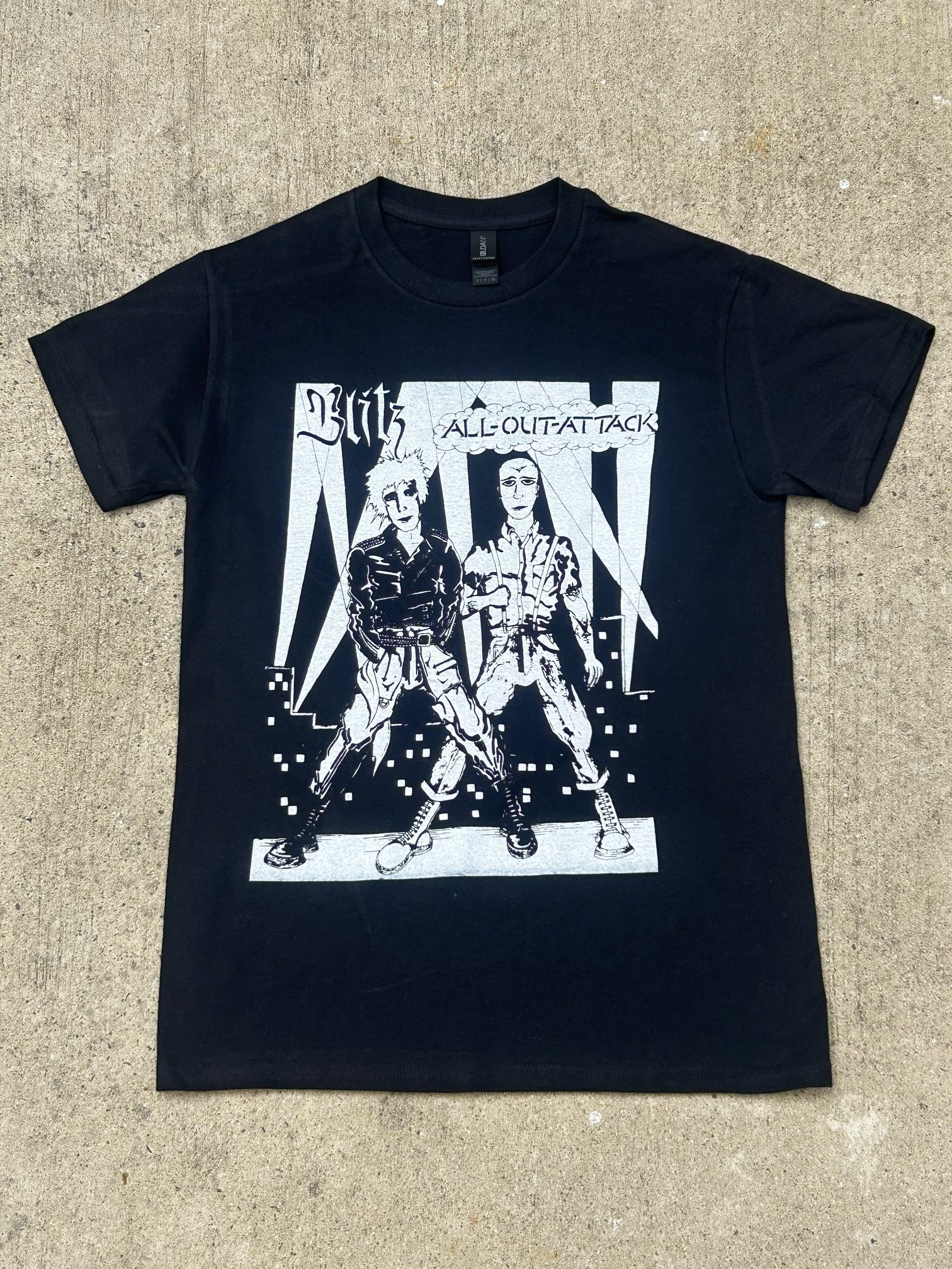 Blitz- All Out Attack$20.00 – $23.00Price range: $20.00 through $23.00 Size Choose an optionSmallMediumLargeXLargeXXLargeXXXLargeClear Blitz- All Out Attack quantity Add to cart SKU: N/A Category: Tshirts Description Additional information Reviews (0) Description 5.3 oz., 100% preshrunk cotton Double-needle sleeve and bottom hems Taped neck and shoulders Classic midweight fabric Classic fit tubular body 7/8″ collar Classic fit Tear-away label Additional information Weight N/A Size Small, Medium, Large, XLarge, XXLarge, XXXLarge Reviews There are no reviews yet. Be the first to review “Blitz- All Out Attack” Cancel replyYour email address will not be published. Required fields are marked *Your rating * Rate… Perfect Good Average Not that bad Very poor Your review *Name * Email * Save my name, email, and website in this browser for the next time I comment. Δ Related products Out of stockTshirtsSpecial Duties Violent Society Read more TshirtsCamera Silens $20.00 – $22.00Price range: $20.00 through $22.00 Select options This product has multiple variants. The options may be chosen on the product page Out of stockTshirtsYouth Brigade $10.00 Select options This product has multiple variants. The options may be chosen on the product page
